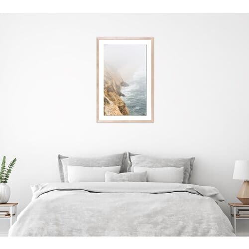 Carly Tabak's aerial image of Half Moon Bay near San Francisco blends drama with peace. The framed print is ready to hang. She has pursued photography passionately and is a recognized landscape photographer from the Bay Area. Her work captures the spirit and elements of each location. As a keen traveler, each photograph reflects Carly's personal experiences. Her goal is to craft art pieces that warmly enhance any home setting.