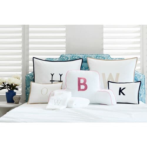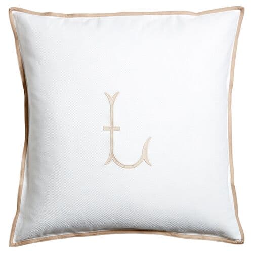 Exclusive to One Kings Lane, this snow-white piqué cotton sham is designed to showcase your chosen initial in a unique type style. The sand-colored thread of the embroidered initial matches the sham's quarter-inch flange, and it features an envelope closure.