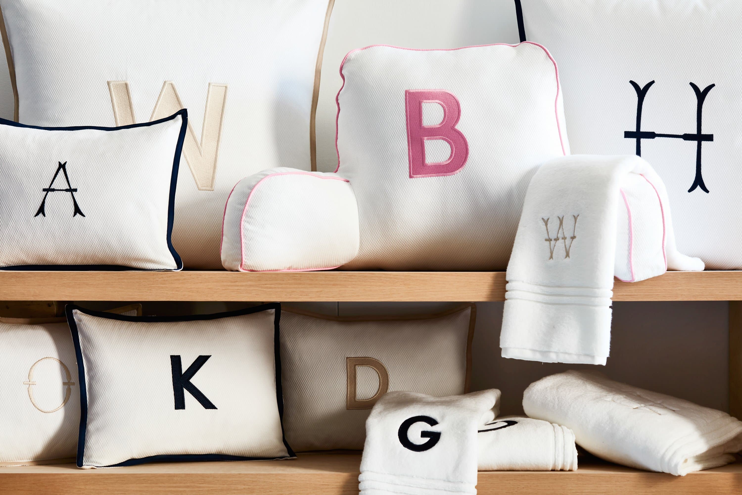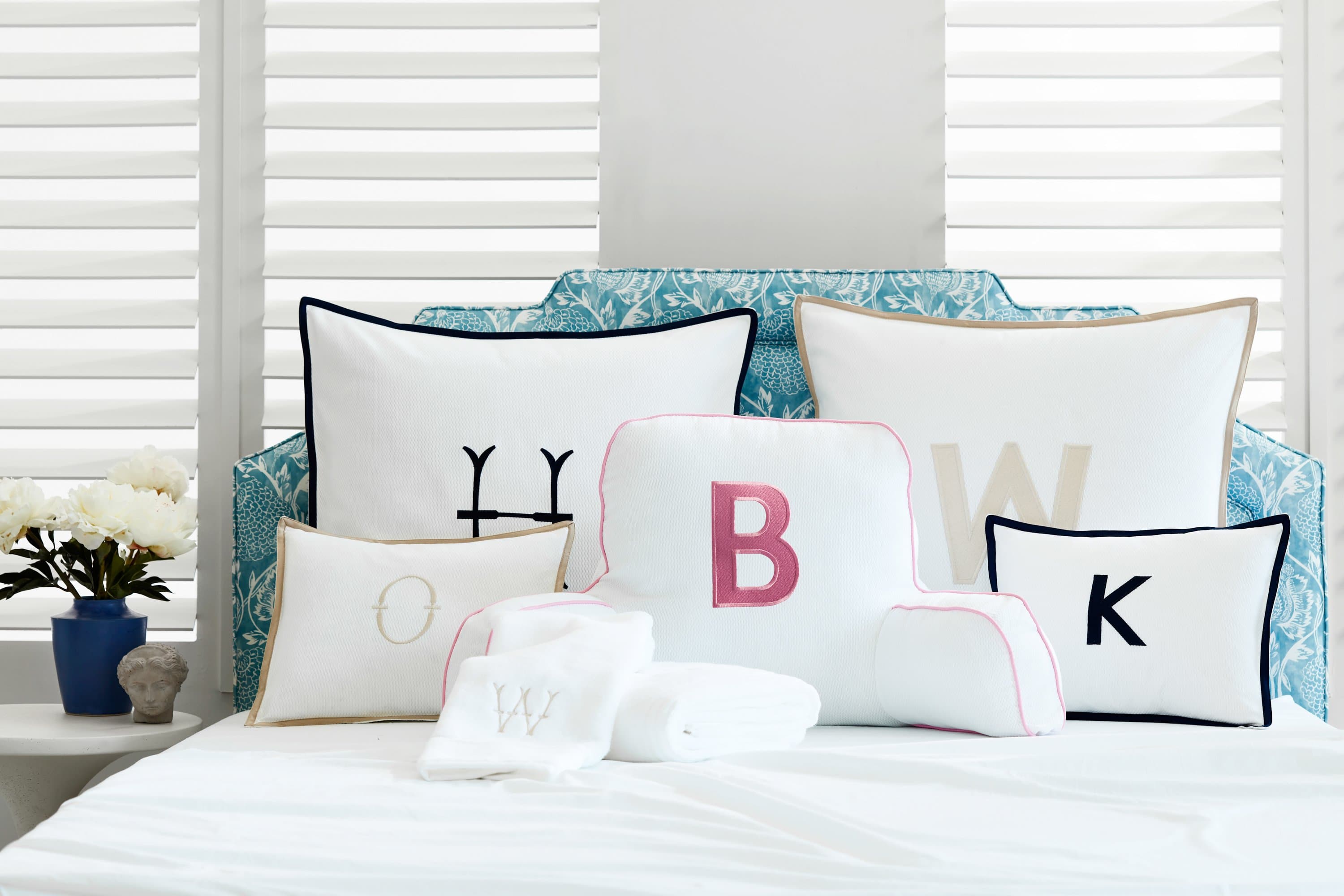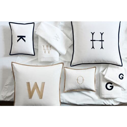 Available exclusively at One Kings Lane, this sham features snow-white piqué cotton that provides an ideal backdrop for your chosen monogram, presented in a crisp, modern aesthetic. The sand-colored embroidery of the initial matches the sham's quarter-inch flange, and it features an envelope closure.