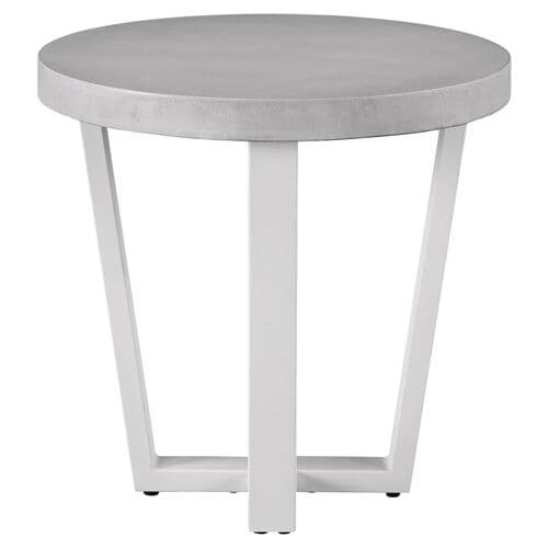 Featuring a round cast-concrete top, this side table has an angular metal base that enhances any patio or deck with a modern touch.