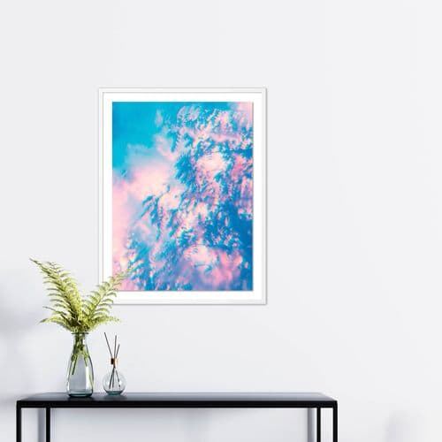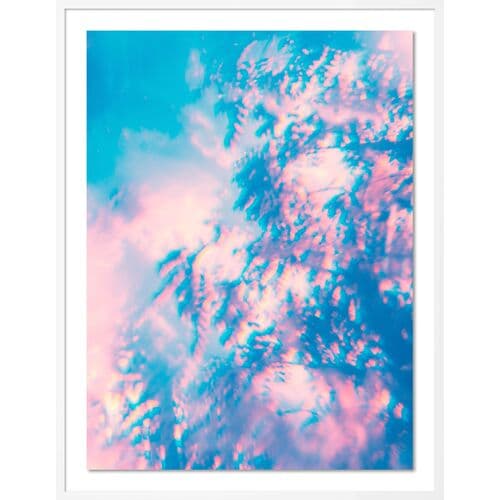 Tommy Kwak's photo captures leafy trees from a unique, abstract angle. The ready-to-hang giclée print arrives framed. Tommy Kwak is known for ethereal large-scale landscapes and participated twice in Reykjavík’s SÍM Residency. His work is displayed in New York and Iceland, with commissions from brands like Louis Vuitton.