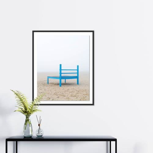Tommy Kwak captures a haunting yet captivating image of a deserted wood frame on a foggy New Jersey beach. The giclée print is delivered framed and ready to hang. Known for ethereal, large-scale landscapes, Kwak has participated twice in the SÍM Residency program in Reykjavík. His work has been showcased in New York and Iceland, and he has received commissions from prominent clients, including Louis Vuitton.