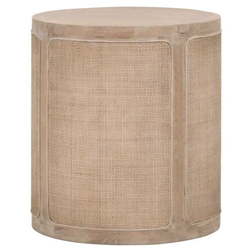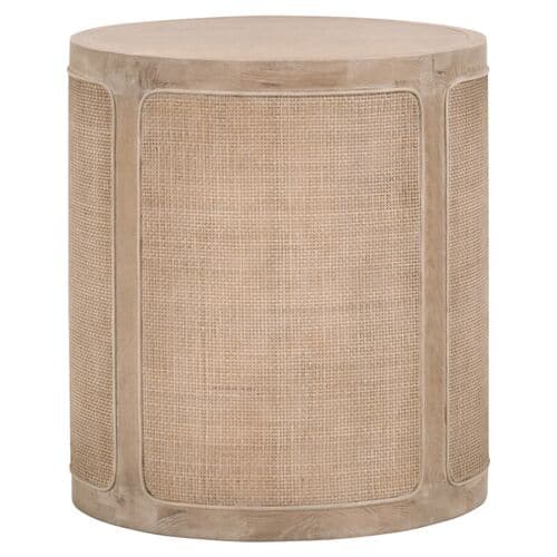 Maverick Round Cane Side Table - Smoke Grey Oak - Gray | End Table, Occasional Table, Small Table - Made of Wood, Made of Oak