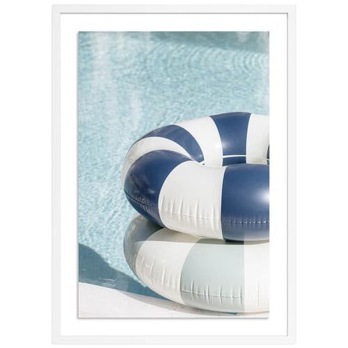 Palm Beach Pool Floats features a design by Carly Tabak. It is located in Palm Beach, Florida, and comes in a framed paper form with a white finish, size M.
