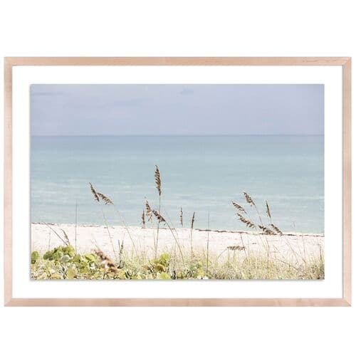 This artwork by Carly Tabak features a depiction of wild grass in Palm Beach, Florida. It is printed on framed paper and comes in a white color scheme.