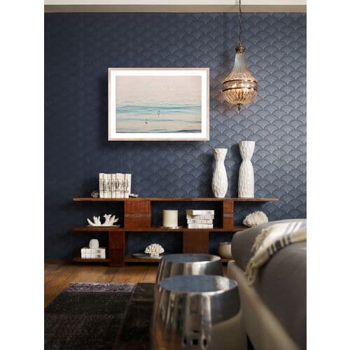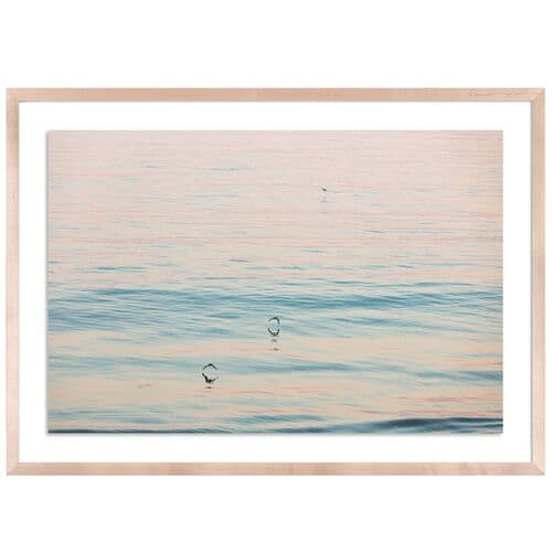 The piece titled 'Peach Glow' showcases the serene beauty of Santa Barbara, captured by Carly Tabak. Framed art displayed on paper, it features a white mat to complement its visual elegance.