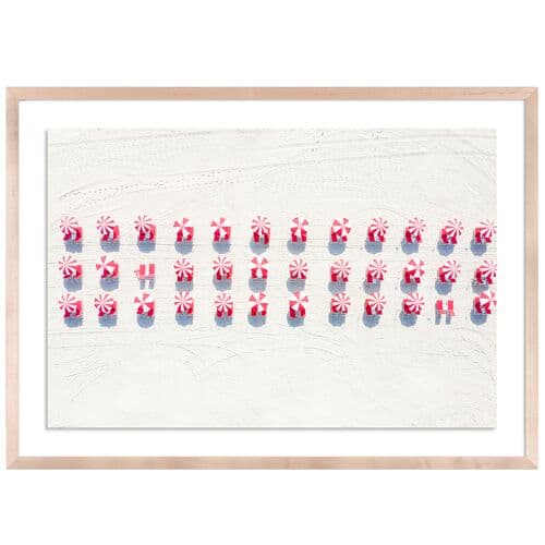 Red Beach Candy is a striking creation by Carly Tabak, depicting scenes from Miami, Florida. It is presented on framed paper with a clear frame finish.