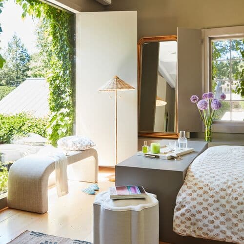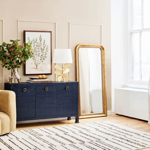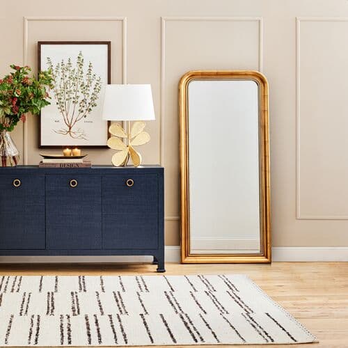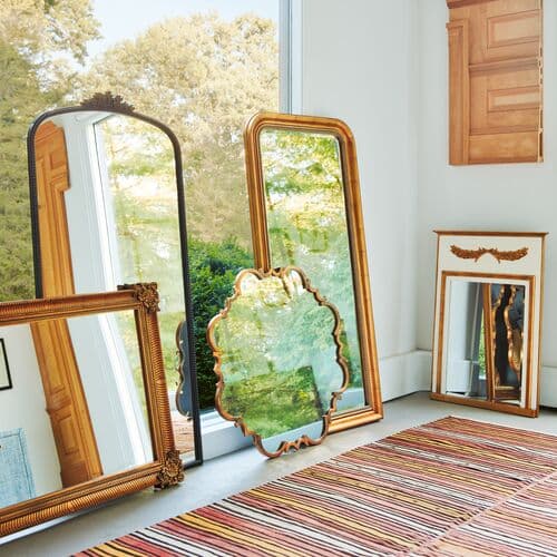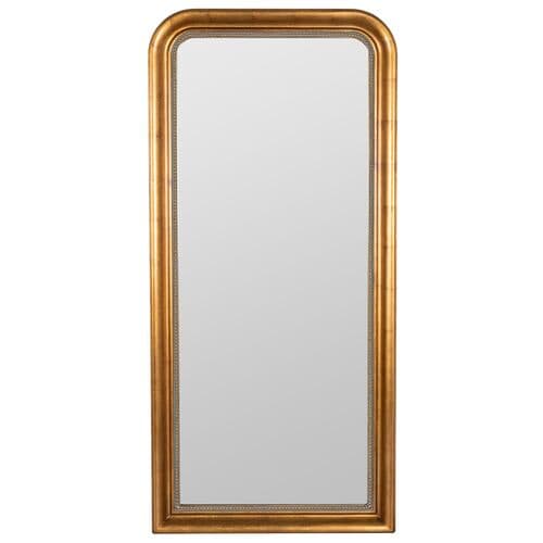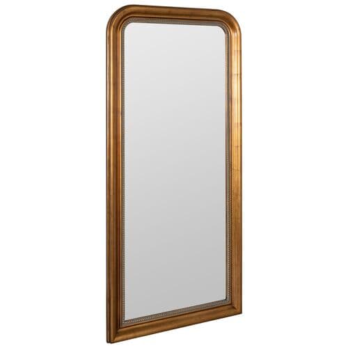 The floor mirror's antiqued gold finish and beaded trim give it the appeal of a classic estate piece. Available in a wall-sized version as well. One Kings Lane provides an exclusive line of furniture and decor, available solely through them. The range captures a distinctive aesthetic, from classic to modern, with handpicked materials and finishes.