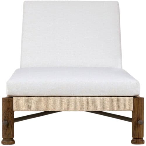 Finnegan Outdoor Teak Woven Chaise - Amber Lewis x Four Hands - White - Comfortable, Sturdy, Stylish | Divan, Sette