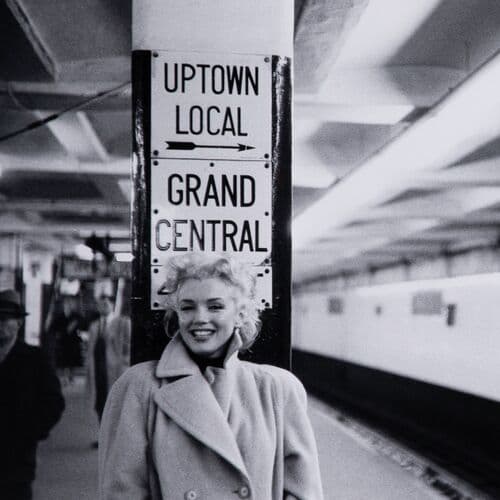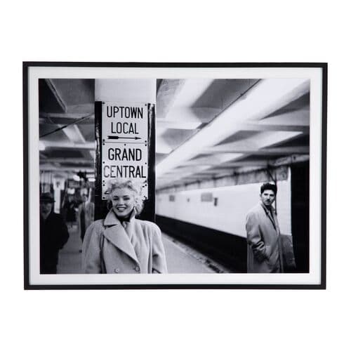 Marilyn Monroe is captured in Grand Central Station, New York, in 1955 by Ed Feingersh. The image is float-mounted and framed in black-finished American maple, providing a gallery-quality appearance. Crafted in Austin, Texas, every print comes with a certificate of authenticity marking the partnership between Getty Images and Four Hands Art Studio.
