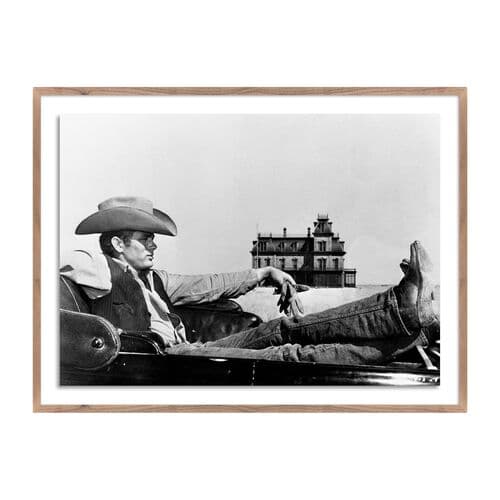 American actor James Dean on the 'Giant' set in Marfa, Texas, 1955. Courtesy of Getty Images, this print is on premium paper and float-mounted in a frame. Handmade in Austin, Texas, each piece comes with a certificate of authenticity, commemorating the exclusive Getty Images and Four Hands Art Studio partnership.