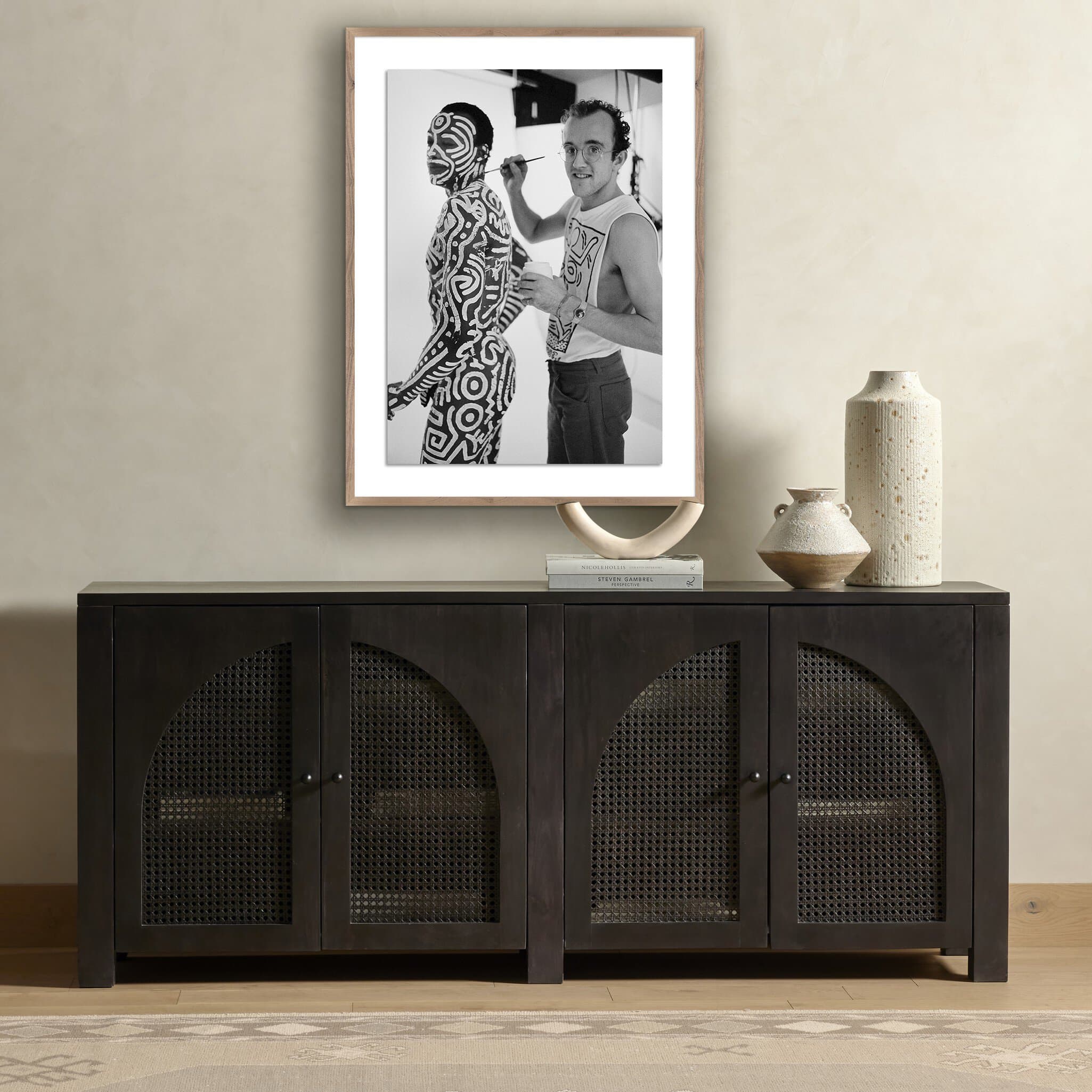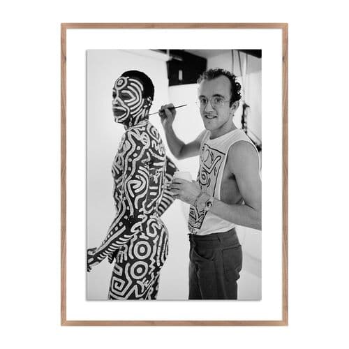 Keith Haring, the visual artist, is captured painting Bill T. Jones in his studio. Each print is handmade in Austin, Texas, and comes with a certificate of authenticity, marking the unique partnership between Getty Images and Four Hands Art Studio.