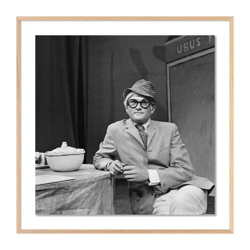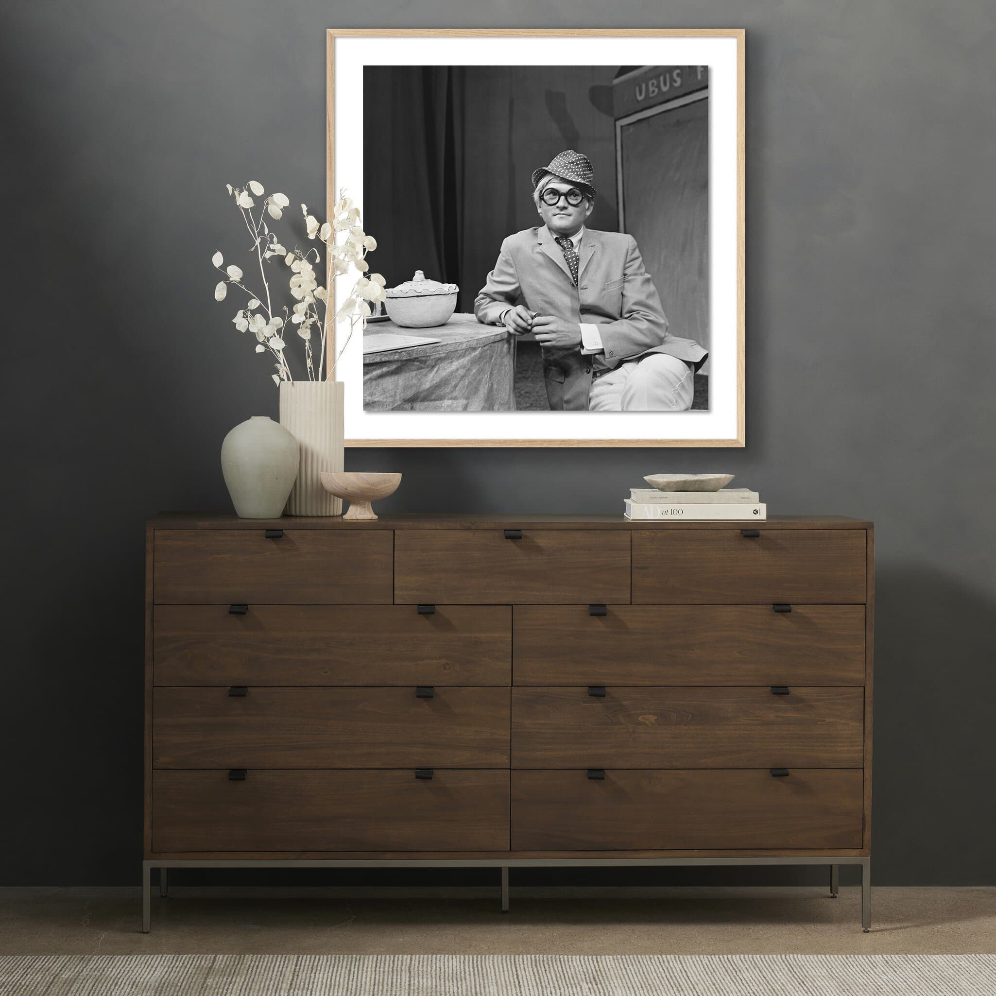 This black and white capture of artist David Hockney is handmade in Austin, Texas. Each print includes a certificate of authenticity, celebrating the exclusive collaboration between Getty Images and Four Hands Art Studio.
