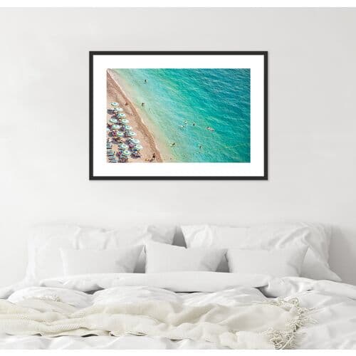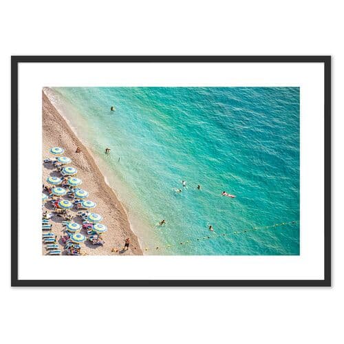 Available exclusively at One Kings Lane, this aerial photograph captures Italian beachgoers enjoying the sand and surf, bringing a touch of summer to your space all year long. The piece comes matted, framed, and ready to hang. Judith Gigliotti, originally from Chicago, studied at Boston University, the Sorbonne, and the California College of Arts and Crafts. Before focusing on photography, she worked in painting, textiles, and ceramics. She draws inspiration and energy from her family, including her seven children, seven grandchildren, husband, and yellow Lab.
