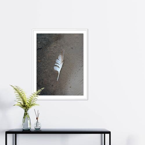Dyrhólaey, the southernmost point on Iceland's mainland, hosts Atlantic puffins during the summer. Capturing a lone feather on the coast, this photograph by Tommy Kwak represents the area's natural allure. The giclée print comes framed and ready for display. Known for his large-scale landscapes, photographer Tommy Kwak has participated in the SÍM Residency program and exhibited in New York and Iceland. His work has garnered commissions, including from Louis Vuitton.