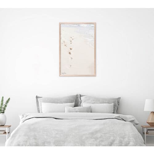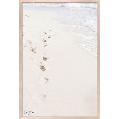 Carly Tabak's photograph captures footprints on a sandy beach, bringing a touch of summer all year long. The giclée print is framed and ready for display. With an enduring passion for photography, Carly Tabak has earned recognition as a skilled landscape photographer. Operating from the San Francisco Bay Area, her work reflects the essence and energy of her explorations.