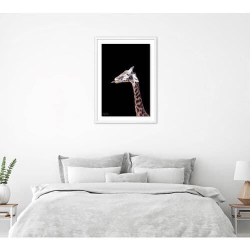 Getting a close view of a giraffe is rare, but thanks to photographer Carly Tabak, now you can. The giclée print is delivered framed and ready to hang. Pursuing a passion for photography, Carly Tabak has become renowned for landscape photography. Based in the San Francisco Bay Area, she captures images that reflect the elements and energy from her explorations.