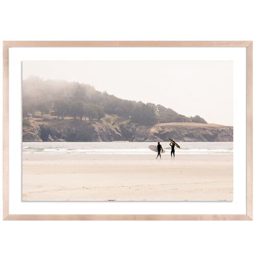 Mendocino Surgers depicts Mendocino, California. Created by Carly Tabak on framed paper with a white finish, medium size.