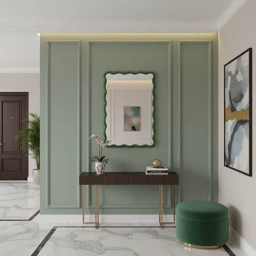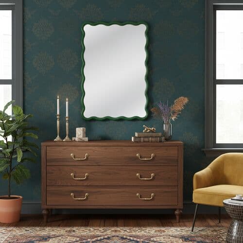 Eldora Wavy Rectangular Wall Mirror | Dressing Mirror, Vanity Mirror - Green - Functional, Aesthetic