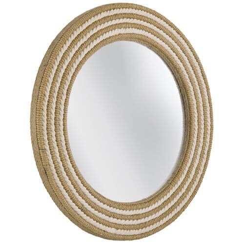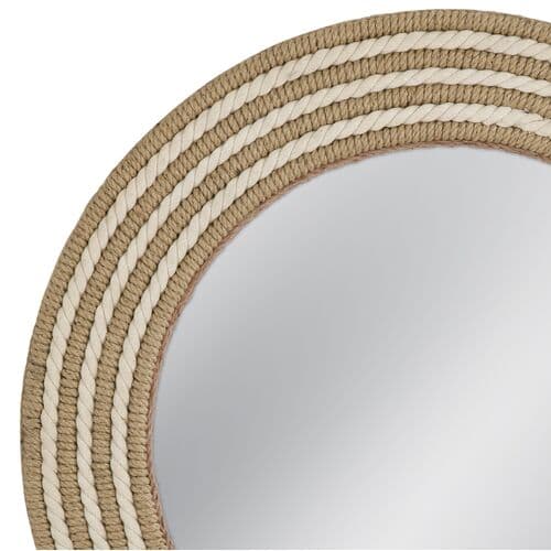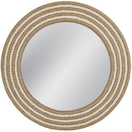 Dover Wall Mirror is framed with a charming round design accented by a delightful rope motif, bringing a coastal boho vibe. Its finish adds a touch of seaside charm to any room, seamlessly fitting with various decor styles. Made from quality materials, this mirror adds warmth and character to your home, serving as a versatile addition to your interior design.