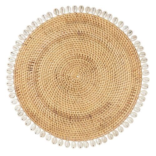 Add a tropical flair to your dining experience with these four place mats. Crafted from durable, eco-friendly bamboo, they feature capiz shell trimming for extra style. Matching coasters are available for purchase.