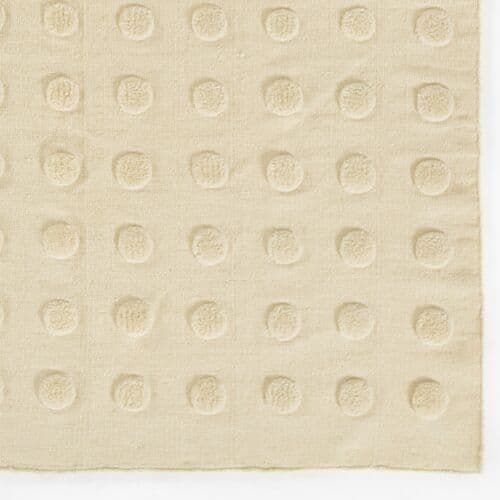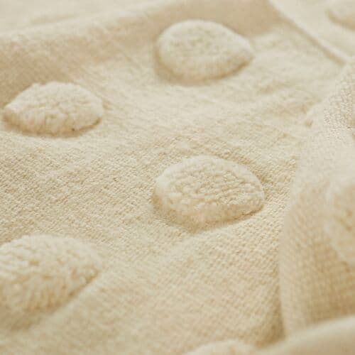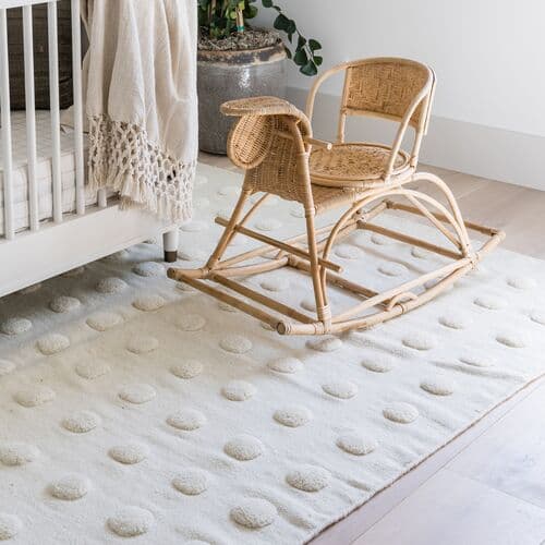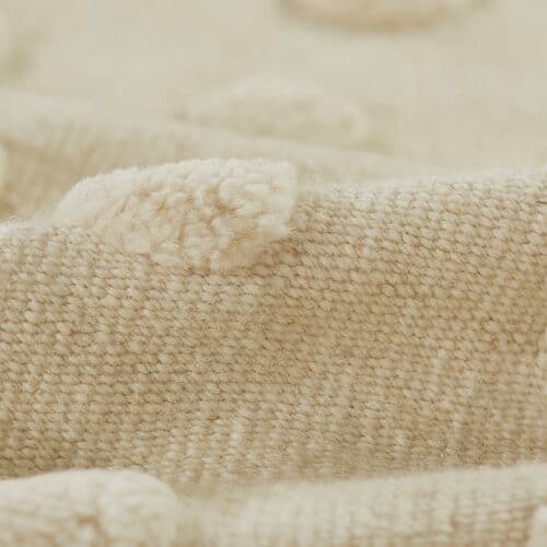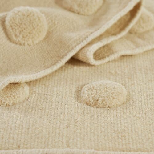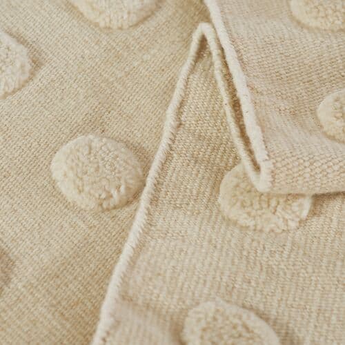 Featuring tufted polka dots, this rug brings a whimsical touch to spaces like kids' rooms, dens, or bedrooms, along with a neutral tone that adds subtle sophistication. Expertly handwoven from tough Argentinian wool known for its durability. To prevent slips, using a rug pad is advisable.