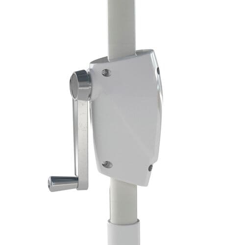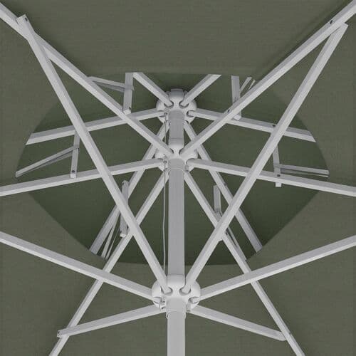 Exclusively designed and available here, this two-tier patio umbrella offers stylish shade for outdoor entertaining or relaxing. Its durable acrylic canopy resists the elements, while the combined aluminum and stainless steel frame has a crank open, non-tilt function. An umbrella base is necessary for use and is not included.