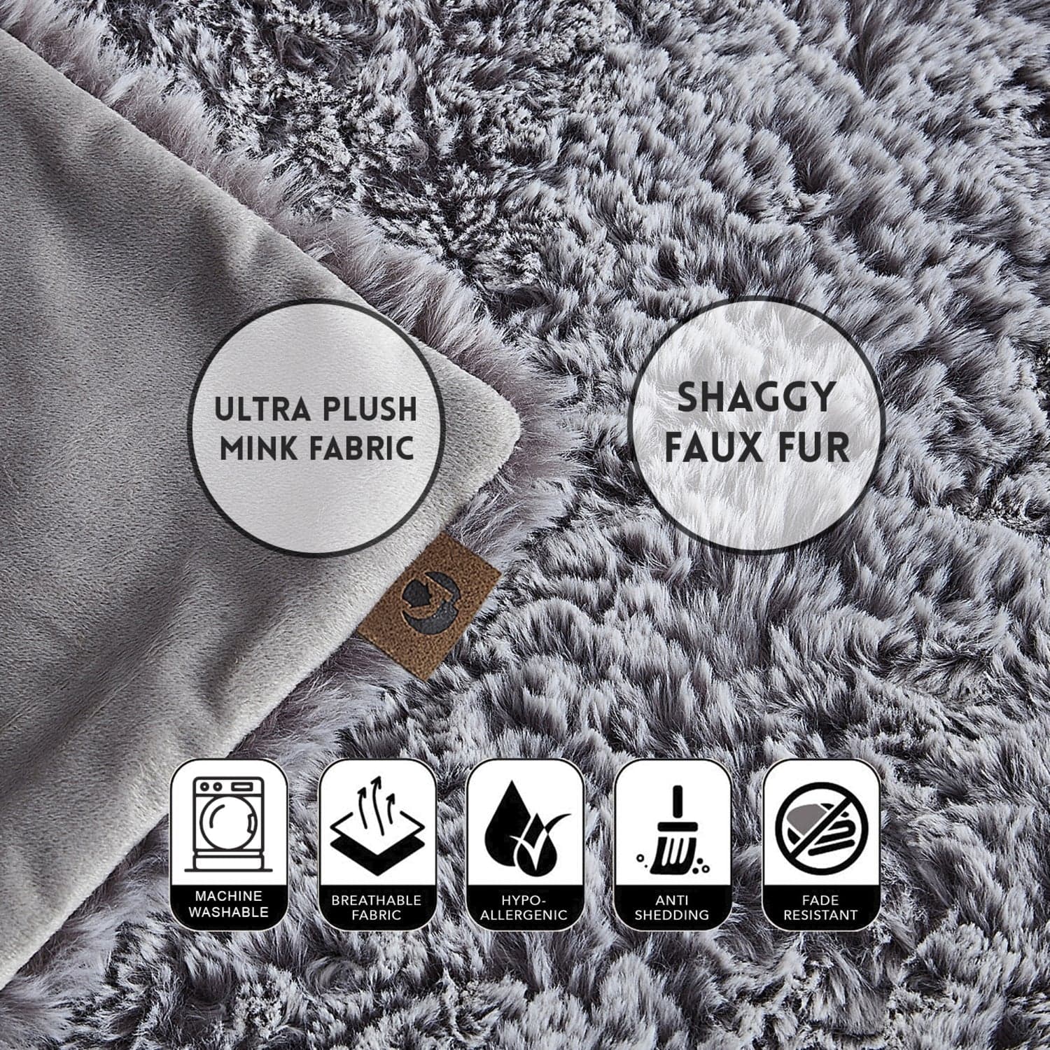 Our faux fur throw blends style and comfort. Featuring a two-tone design, it suits various home decor. Made from 100% polyester, this throw is plush and great for any room or travel. Enjoy comfort and style simultaneously. FEATURES: * EXPERTLY MADE FOR SOFTNESS * This blanket's unique craftsmanship delivers maximum comfort and is skin-friendly. Stitched for lasting durability. * CLASSIC DESIGN * Showcases a classic two-tone style with an elegant knit. Its sleek appearance enhances any room's decor. * VERSATILE USE * Perfect as an accent or layering piece, this throw keeps you warm on cold nights and doubles as a travel blanket. * MACHINE WASHABLE * Easily washable in a machine with cold water, tumble dry low. * MULTIPLE COLORS AVAILABLE * Available in several colors, it aligns with contemporary decor trends in 50”x60” size. SPECIFICATIONS: * SIZE: 50"x60" * WEIGHT: 3 lbs * MATERIAL: 100% Polyester front and back * BED SIZE: Throw