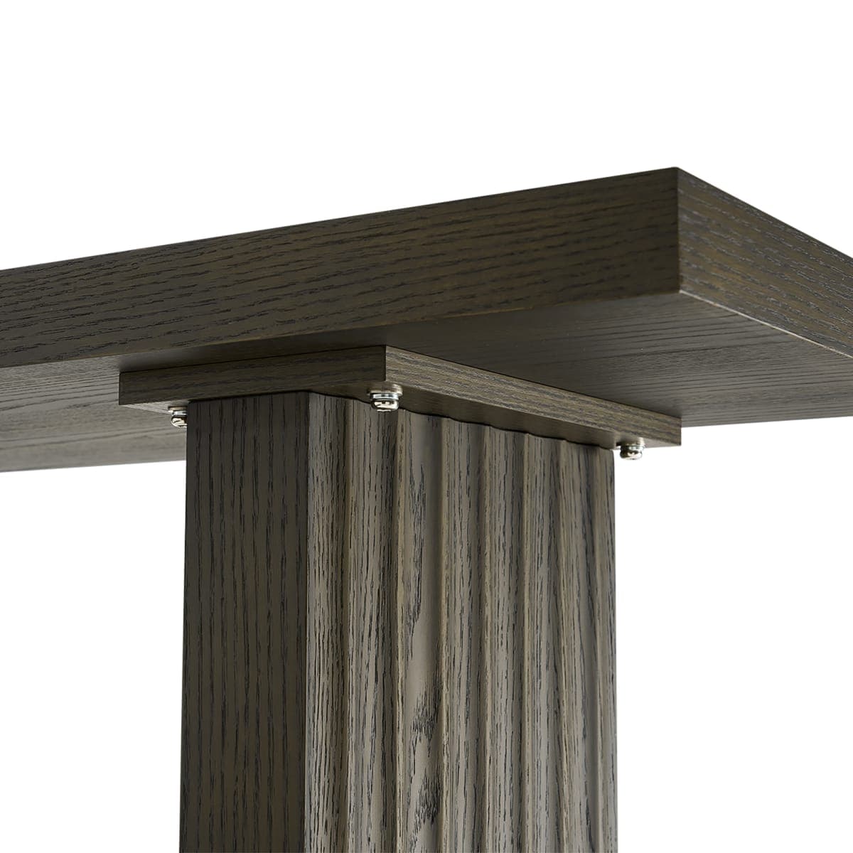 Characterized by fluted panels, Sloane's removable leather bench cushion makes cleaning up after dinner parties a breeze.