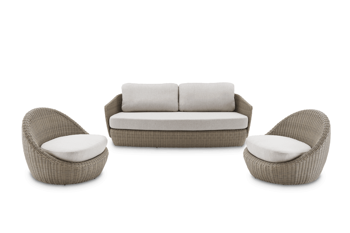 Characterized by a wicker weave and weather-resistant cushions, the Malta Collection lends a cozy vibe to outdoor lounging.