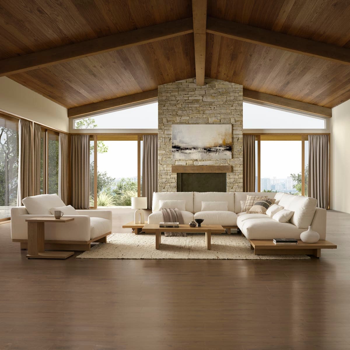 With a refined silhouette that sits low to the ground, Mori delivers a luxurious lounging experience with feather-filled seats.