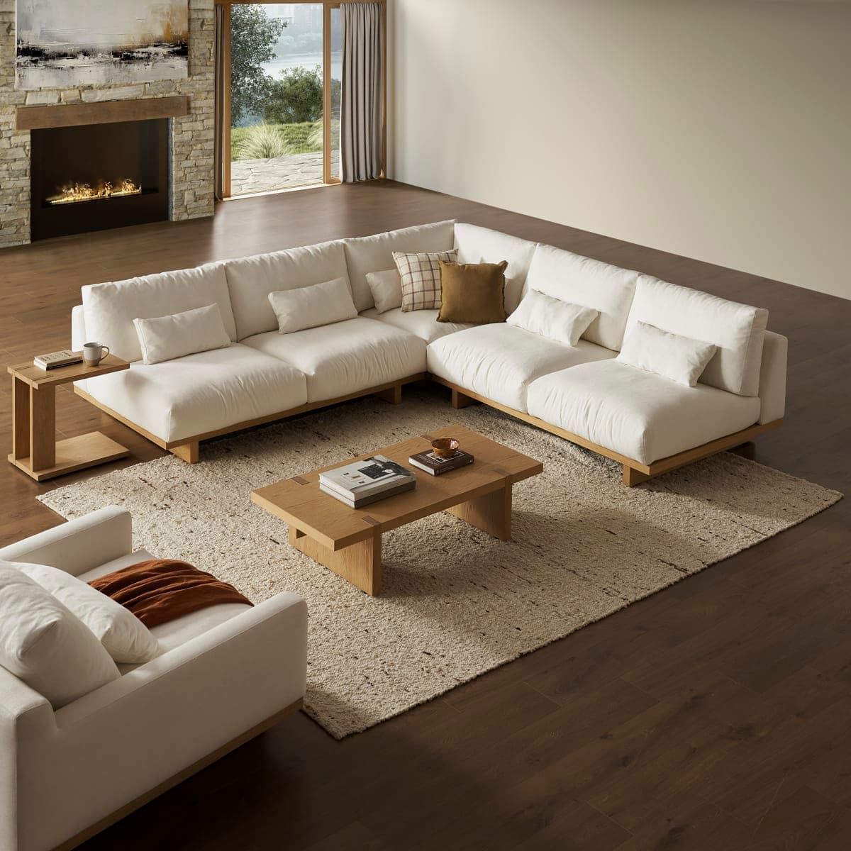 With a refined silhouette that sits low to the ground, Mori delivers a luxurious lounging experience with feather-filled seats.