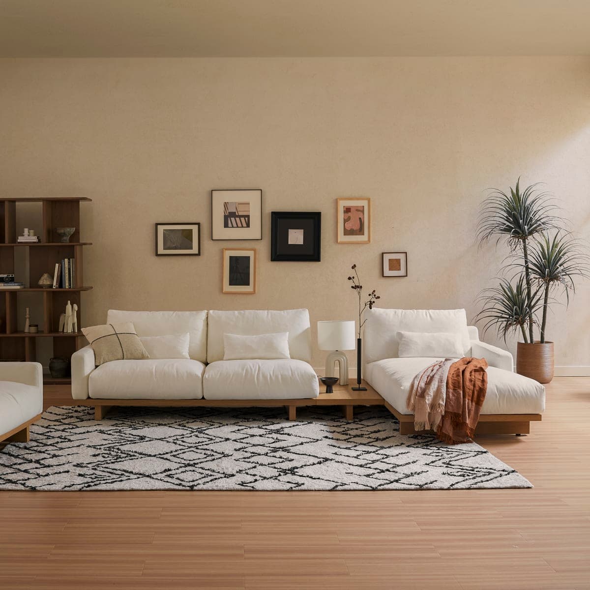 With a refined silhouette that sits low to the ground, Mori delivers a luxurious lounging experience with feather-filled seats.