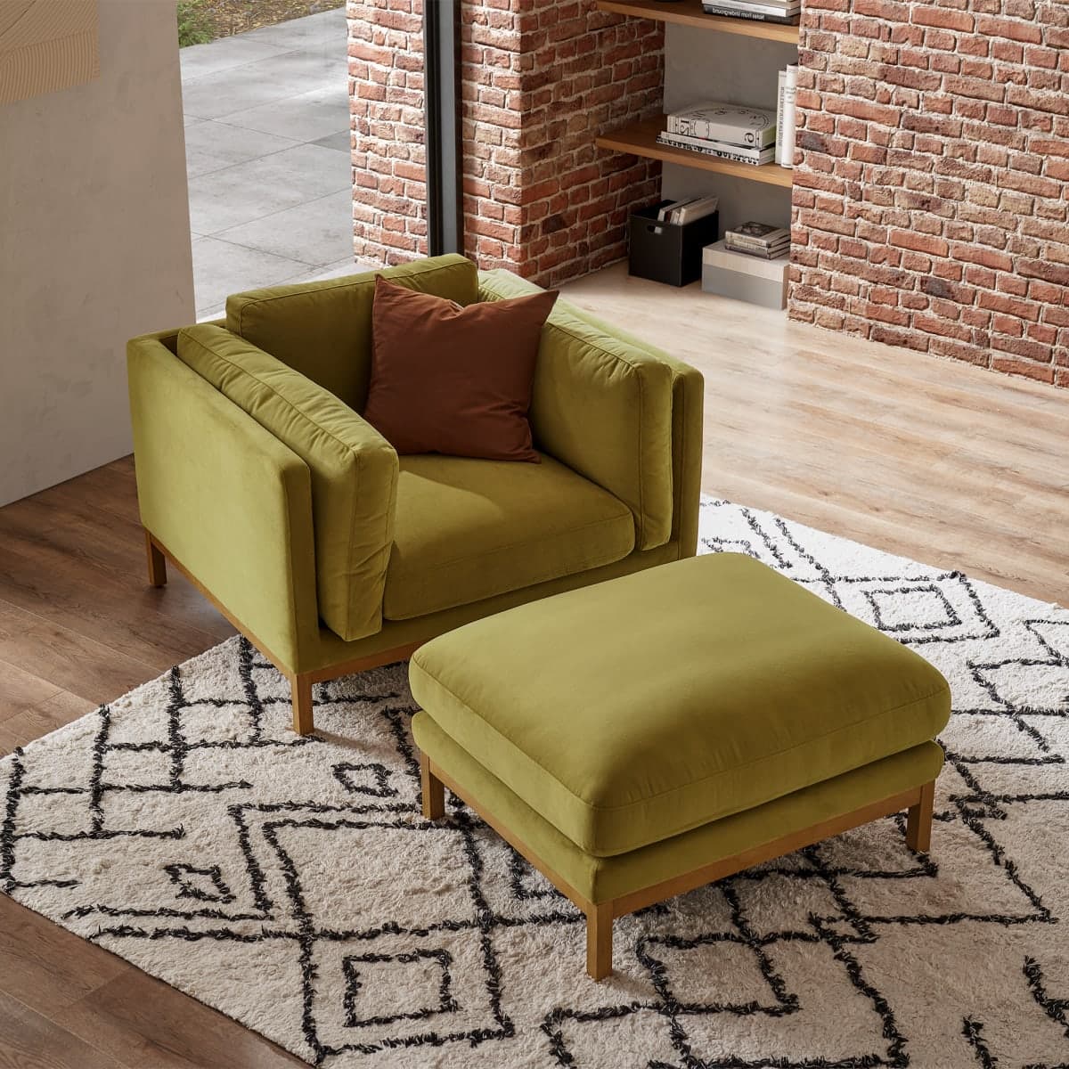 Gold Velvet Armchair, Natural Leg | Owen by Castlery