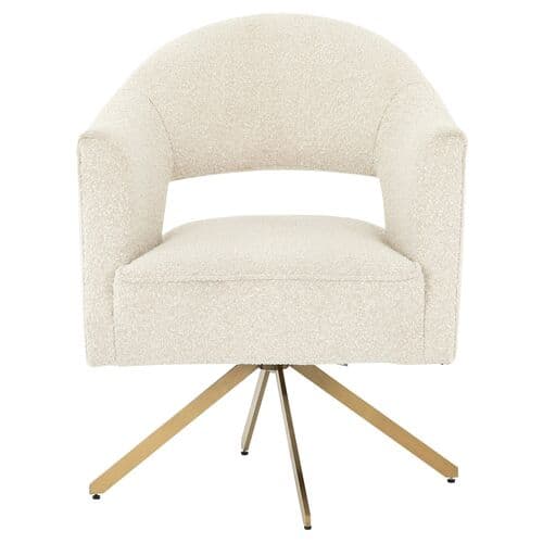 Many desk chairs lack the chic design to fit into a living room, but this swivel model does. Its elegant curves and ample cushioning provide optimal comfort, while the tapered legs with a polished brass finish enhance its style.