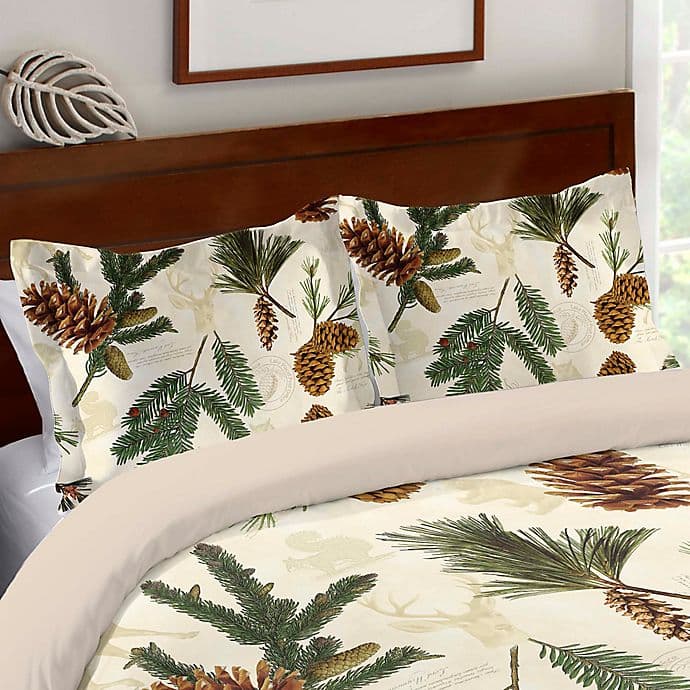 Open Box - Millwood Pines Vidrio Pinecone Standard Sham - Single Sham - Cream/ Green
