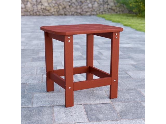Open Box - Flash Furniture Charlestown All-Weather Poly Resin Wood Adirondack Side Table in Red