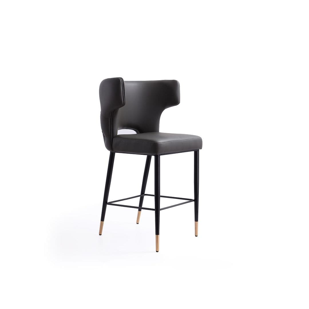 Manhattan Comfort Holguin 24" Faux Leather Counter Stool - Gray/Dark Walnut