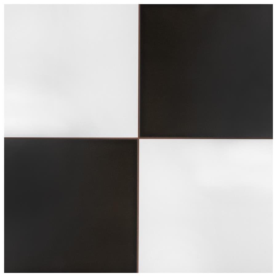 SomerTile Checker Ceramic Floor and Wall Tile set measures 17.63" x 17.63". Includes five black and white tiles.