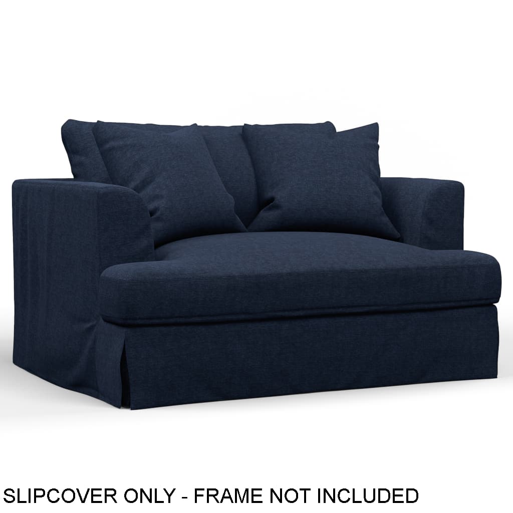 Sunset Trading Newport Slipcovered 52" Chair and A Half with 2 Throw Pillows - Navy Blue