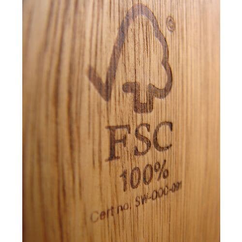 A stylish choice for your outdoor space, this dining set includes armchairs with contemporary white resin seats and splayed eucalyptus legs. The matching eucalyptus table features a slatted top with a cutout for an umbrella. All eucalyptus components are FSC-certified and treated with oil for protection against pollution, salt air, and mildew.