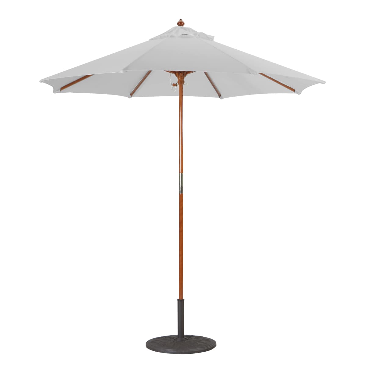 Sunbrella fabric is made from dyed acrylic fibers that withstand fading due to UV exposure. It offers up to 98% UV protection and is resistant to stains, water, mold, and mildew. The breathable material allows air circulation and can be cleaned with mild soap and water. With a 7.5' shade size, this market umbrella has a push-up lift method and no tilt feature.