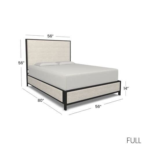Featuring an exposed antiqued iron frame, this bed boasts a chic aesthetic. The linen-blend upholstery is generously padded with foam. Requires a mattress and box spring. Crafted in the USA.
