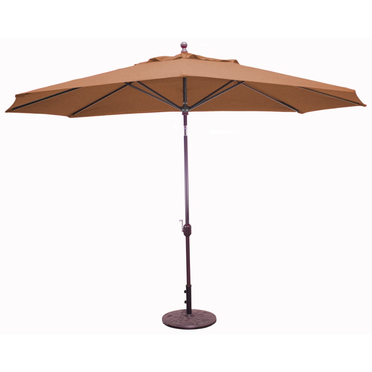 Sunbrella is a durable acrylic fabric with fibers embedded with UV-stable pigments to maintain color and resist fading. It offers up to 98% UV protection. The fabric's stain and water resistance shields against mold and mildew. Its breathable nature lets air circulate, and it can be cleaned with mild soap and warm water. Shade Size: 11' Umbrella Type: Market Tilt Method: Auto Lift Method: Crank.