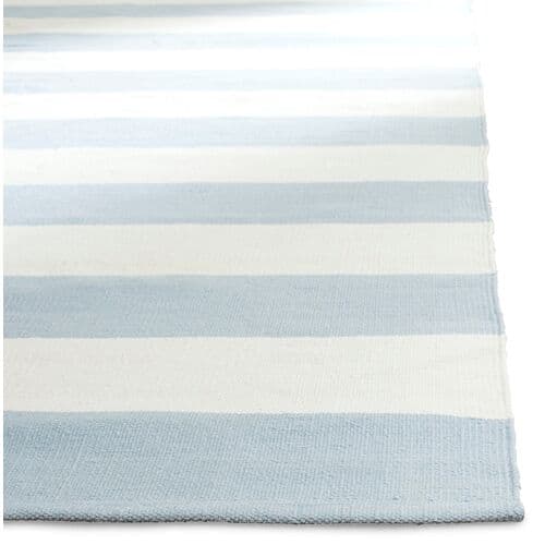 With its classic cabana stripes in sky blue and white, this handwoven cotton rug brings texture and casual design to any area. To prolong your rug's life and keep it securely in place, a rug pad is recommended.