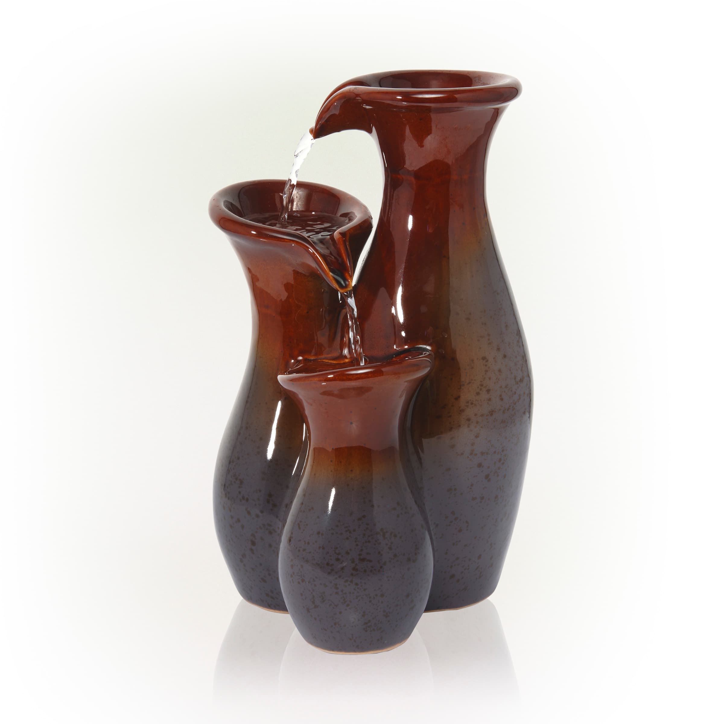 Alpine Corporation 3-Tier Ceramic Vase Tabletop Fountain - Glossy Brown/Gray