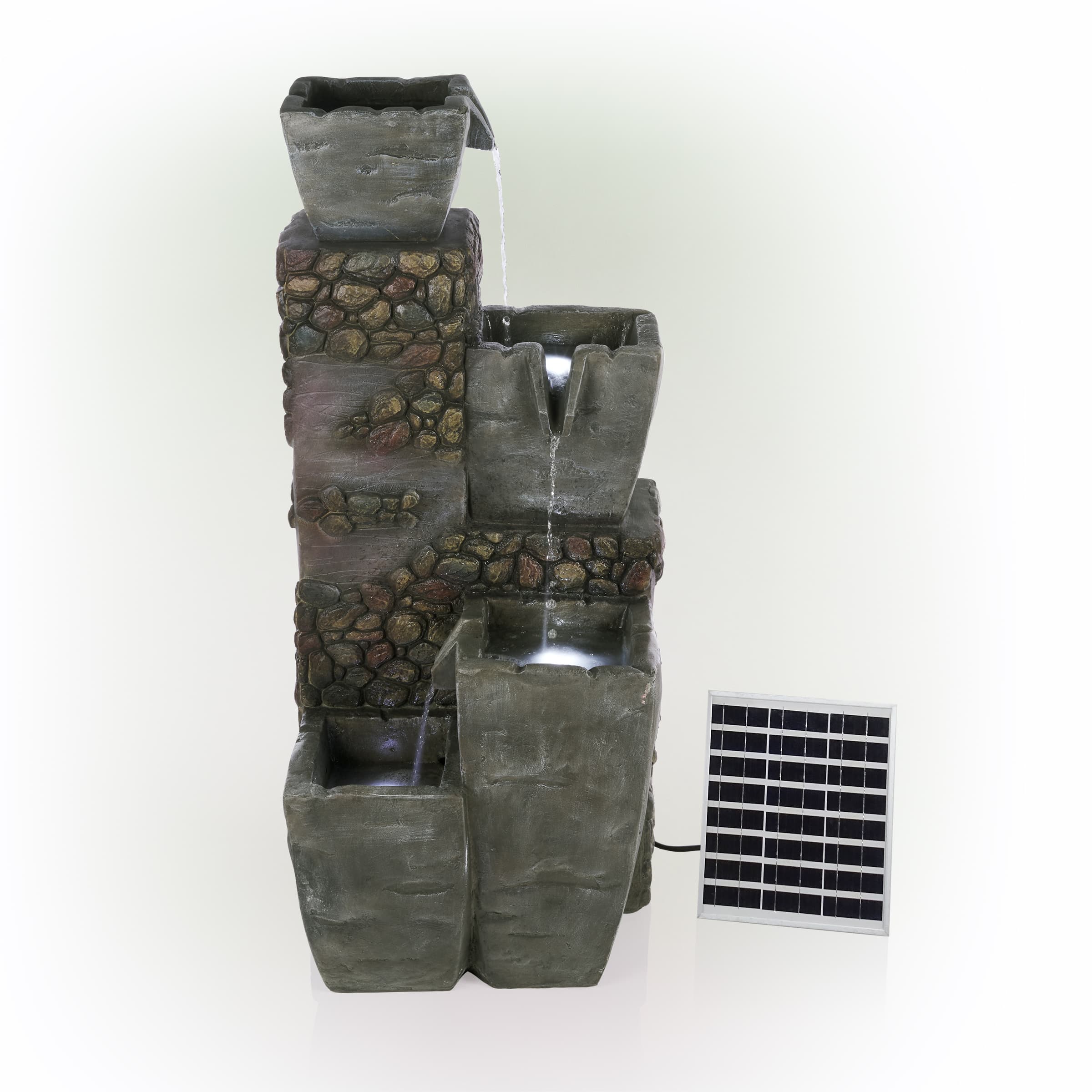 Alpine Corporation Solar Cascading Stone Pots Tiered Outdoor Fountain - Gray