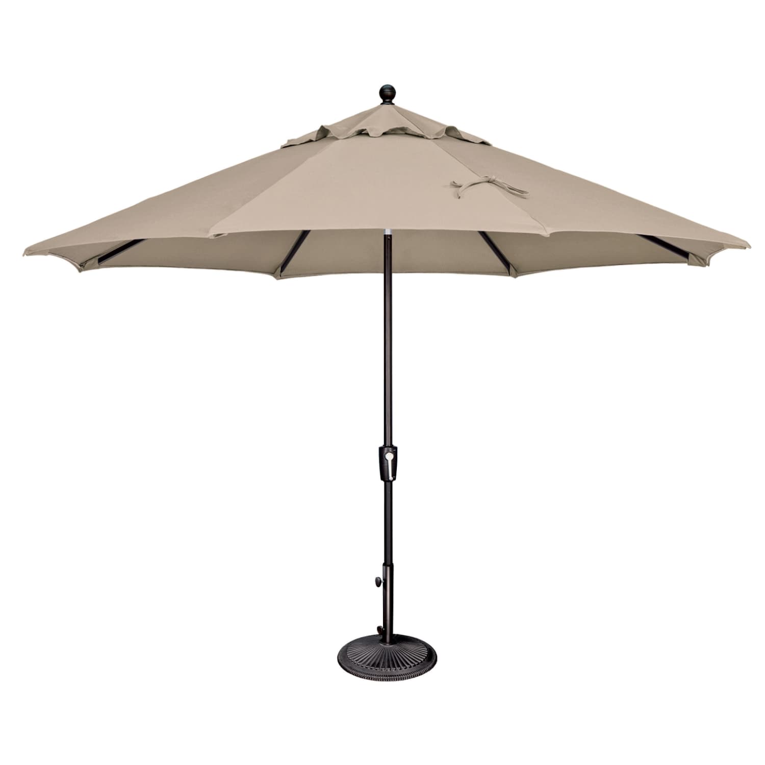 With a simple button push, the Catalina Market Umbrella can tilt to follow the sun, allowing for continual outdoor enjoyment. Type: Market Umbrella. Size: 11'. Tilt: Push Button. Lift: Crank. Shape: Octagon.