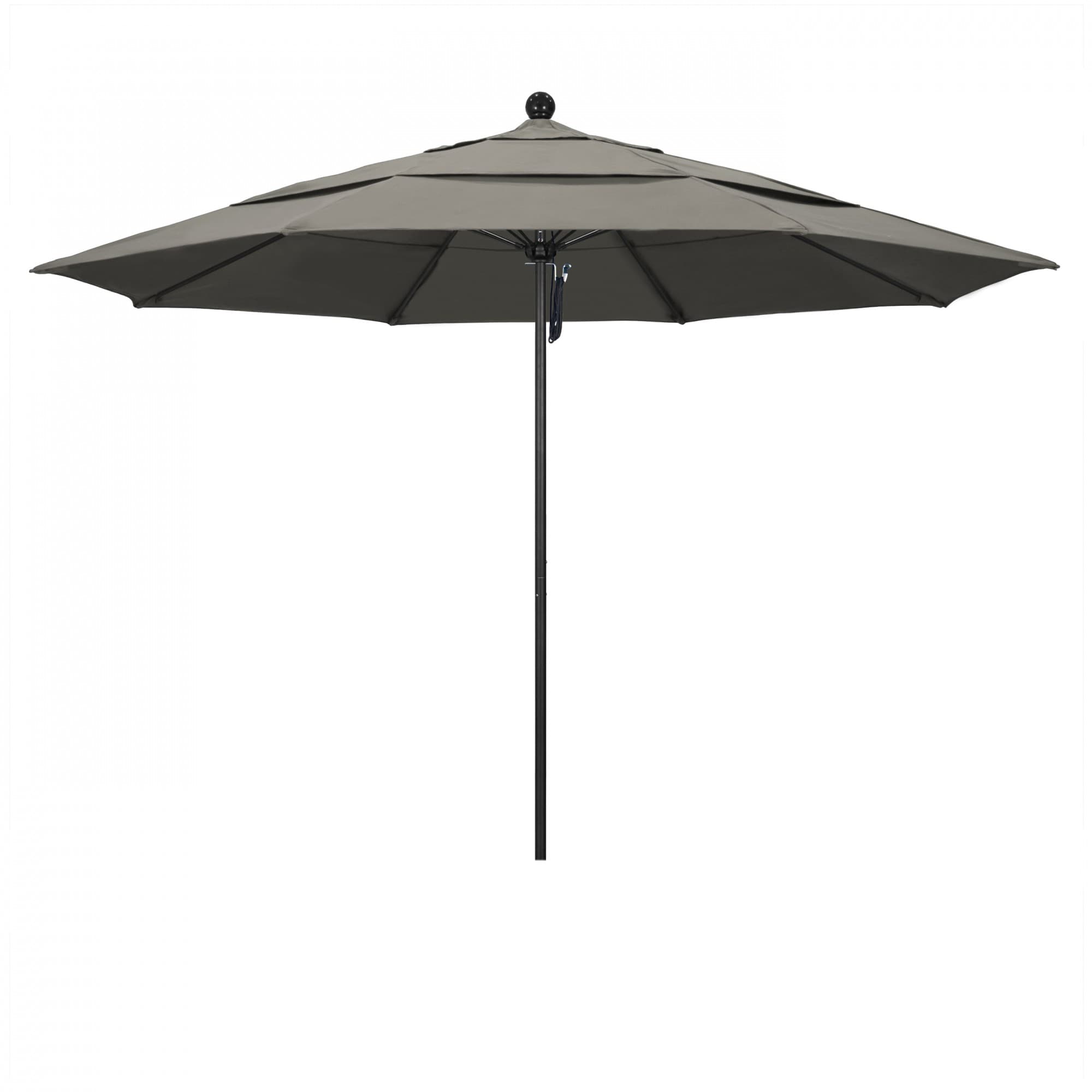 California Umbrella 11' Venture Series Pacifica Patio Umbrella Aluminum Pole Fiberglass Ribs Pulley Lift - Taupe/Stone Black