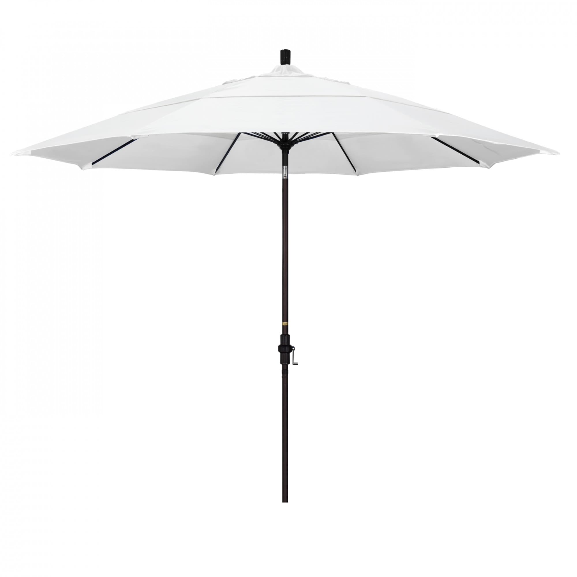 California Umbrella 11' Sun Master Series Sunbrella Patio Umbrella Aluminum Pole Fiberglass Ribs Collar Tilt Crank Lift - Natural/Bronze